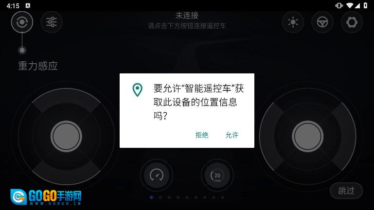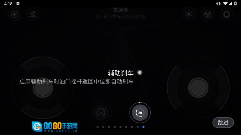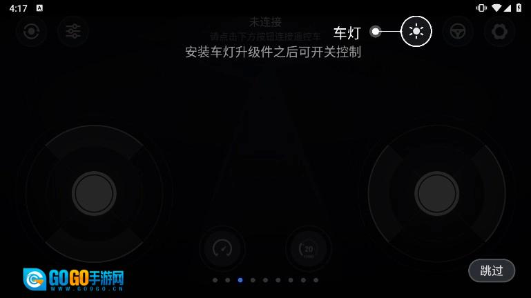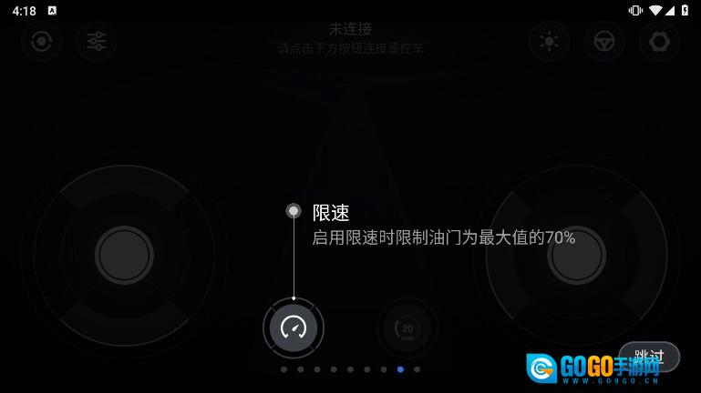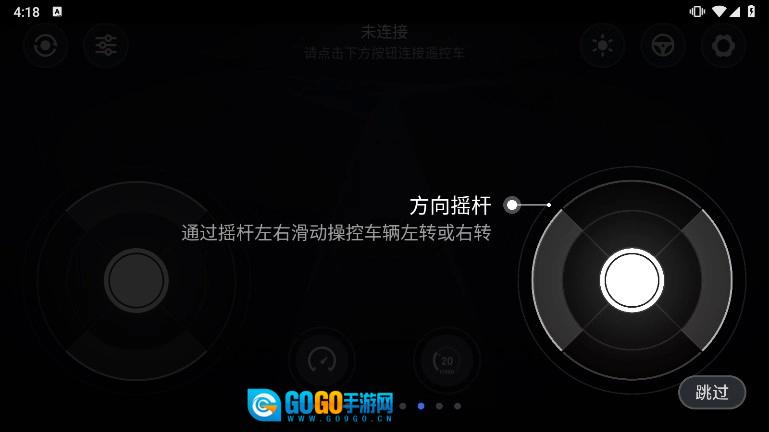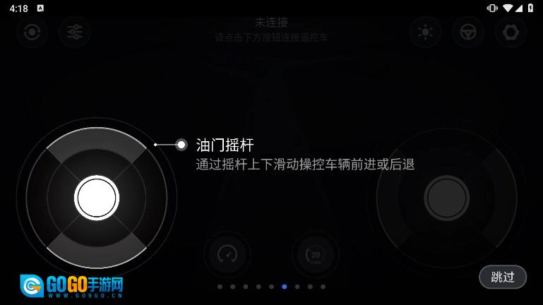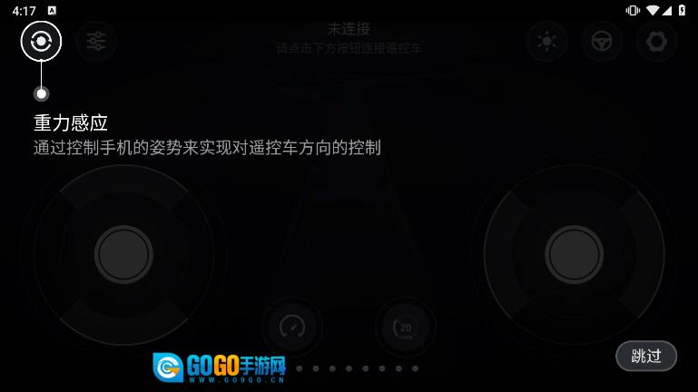 一、位于左上角的首个按钮为【重力感应】,可借助调整手机的姿态来完成对遥控车方向的操控。