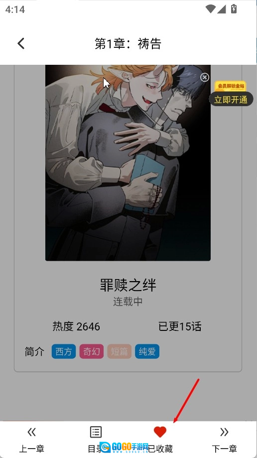 点击漫画页面上的爱心图标,就能把这部作品收藏到书架里,这样以后继续阅读和追更都会很方便。