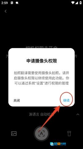 这里需要申请一下手机摄像头的权限,点击“继续”。