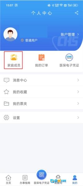接下来进入个人中心页面,在这个界面里找到并点击“家庭成员”选项,然后就能在对应的页面中添加家庭成员了。