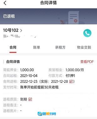 点击进入对应的租客合同。
