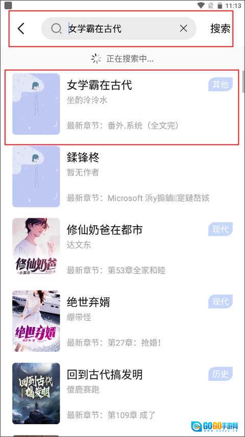 在搜索框里输入相关关键词后,系统会自动进行匹配并呈现对应的书籍,点击即可进入详情页面。