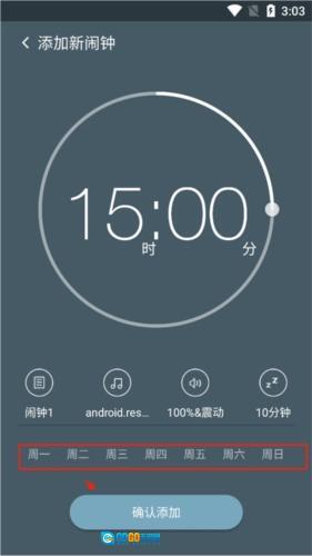 点击星期就可以选择闹钟重复响铃周期。