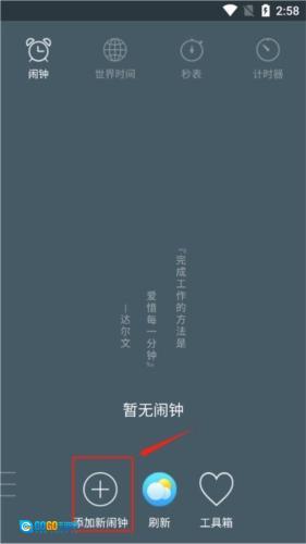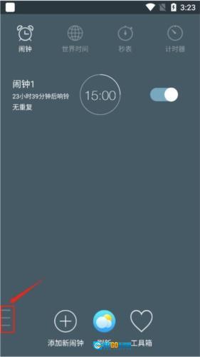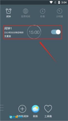 用户进入的主页面,选择“添加新闹钟”。