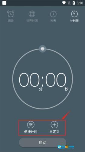 用户进入“计时器”界面后,可在此选择“便携计时”或“自定义”选项。
