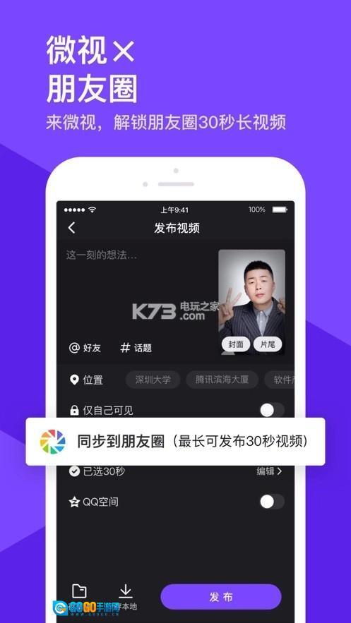-「朋友圈30S」功能:通过微视发布视频到朋友圈,最长可以发布30秒的视频,微信的这项特权现在可以抢先体验。微视简介