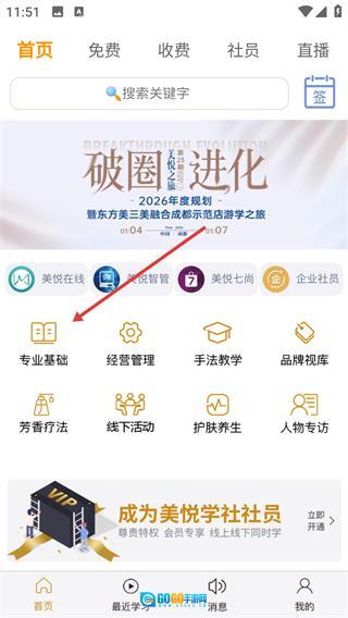 在美悦学社首页找到【专业基础】分类并点击,即可进入该分类对应的课程列表页面。