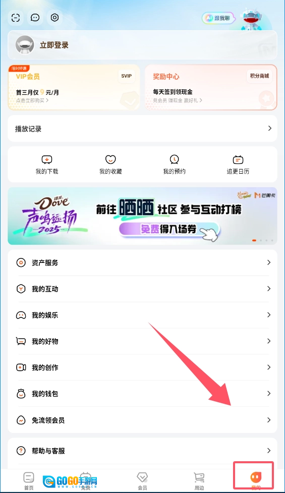 资产服务板块支持查看会员状态、优惠券等权益信息。互动社区功能可供用户参与内容讨论,分享观影体验。
