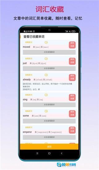 阅读时可随时收藏碰到的单词,也能借助记录的单词来回味文章内容。