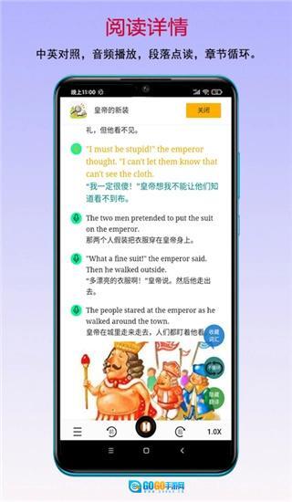 挑选书籍并进入阅读详情页后,就能使用关闭、音频朗读、中英文翻译等功能了