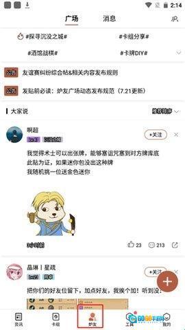 点击炉友,玩家之间可在炉友广场发布自己的动态。