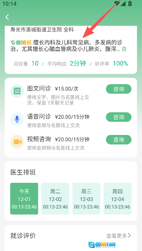 点击对应医生,查看其问诊方式及排班信息。
