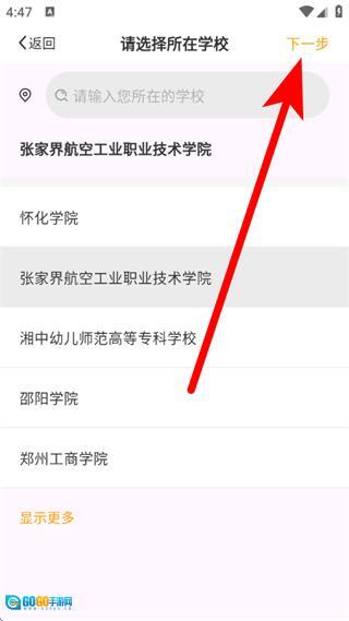 在学校选择页面,搜索并选中自己所在的学校,点击“下一步”按钮,即可进入信息填写界面。