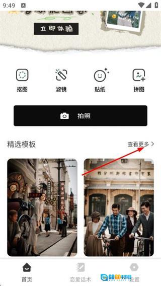 在首页点击精选模板旁边的“查看更多”按钮,即可进入模板列表页面。