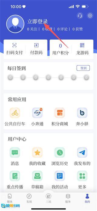 在个人页面,点击“立即登录”区域,即可进入账号登录页面。