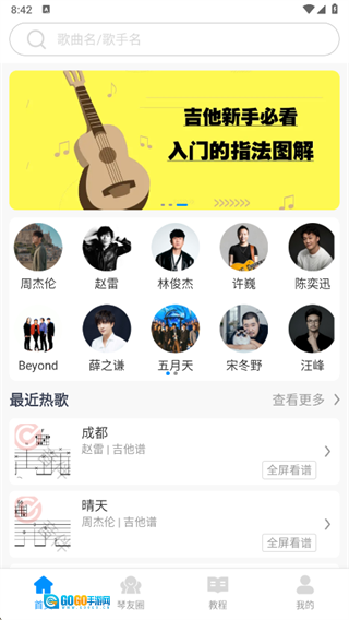 这款软件拥有摇滚、民谣、流行等多种风格的免费吉他六线谱,并且曲库会不断更新。