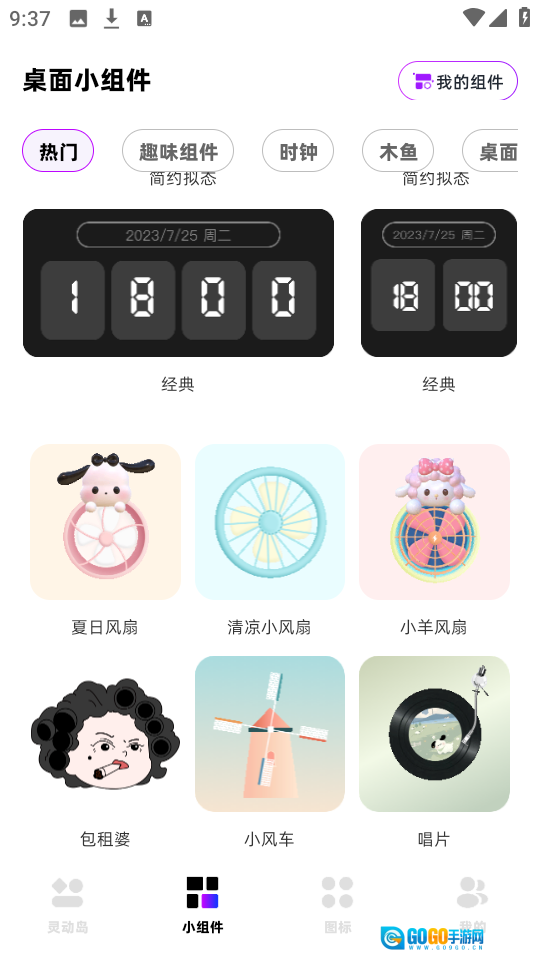 任意选择一款小组件,如图所示。