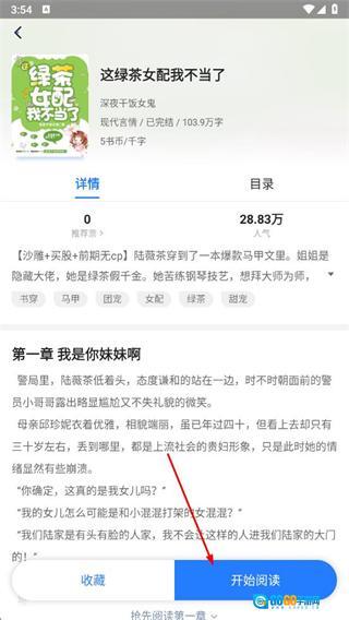 3、在小说详情页面,点击开始阅读按钮,即可开始看书。