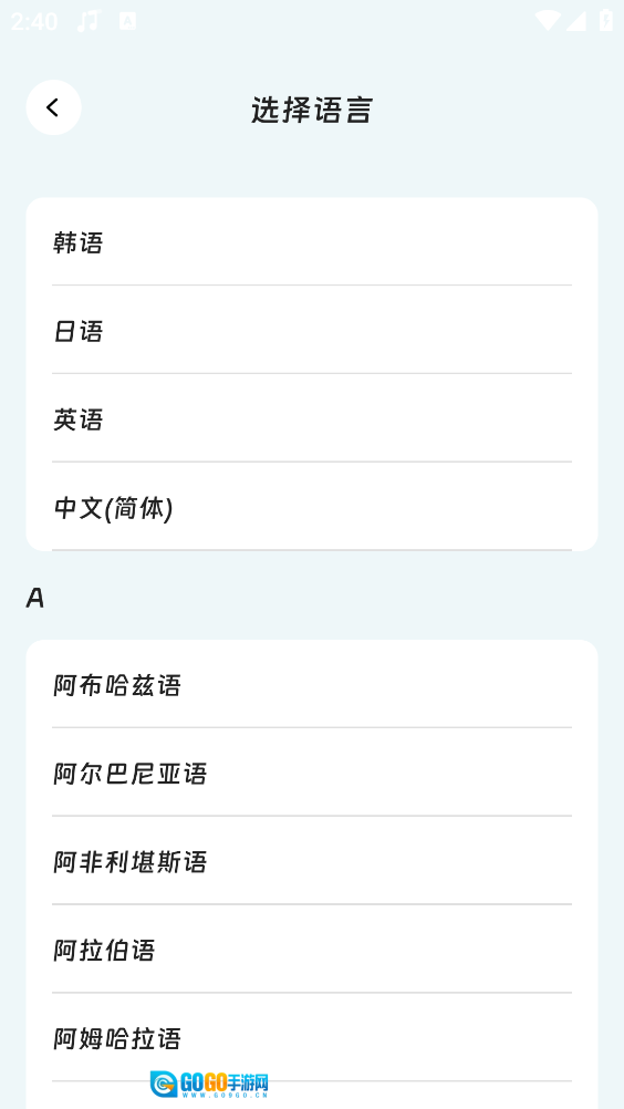 5、点击语言图标进入,如图所示,也能够挑选其他语言来开展翻译操作。