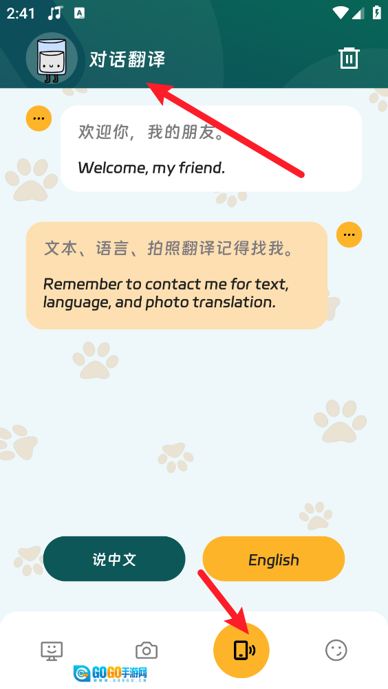 7、最后还可以根据需求开启对话翻译。