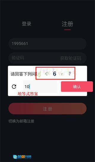 3、然后点击“获取验证码”,需要回答问题如下图,等式为4+6=?,验证码那里需要输入答案10;