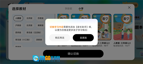 2、选择想要切换的年级教材,点击确定。