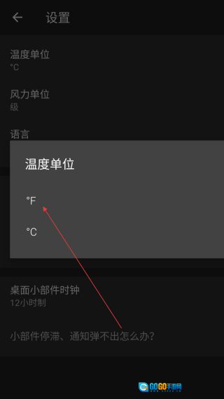 4、进入温度单位选择界面后,选择【°F】选项,就能把温度单位设置成华氏度了。