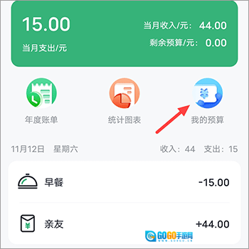 1、打开软件后,点击“我的预算”