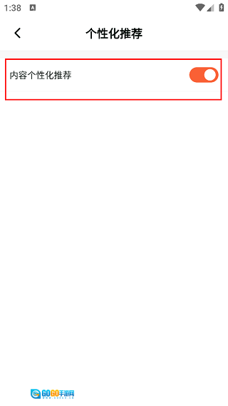 4、然后在打开的窗口中,将“内容个性化推荐”右侧的开关按钮关闭就可以了。