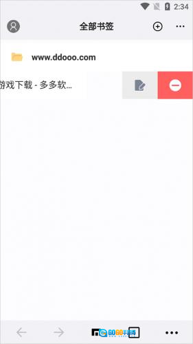 2、在书签的页面中,将想要删除的收藏网址往左滑,就能看到红色减号的删除的图标。