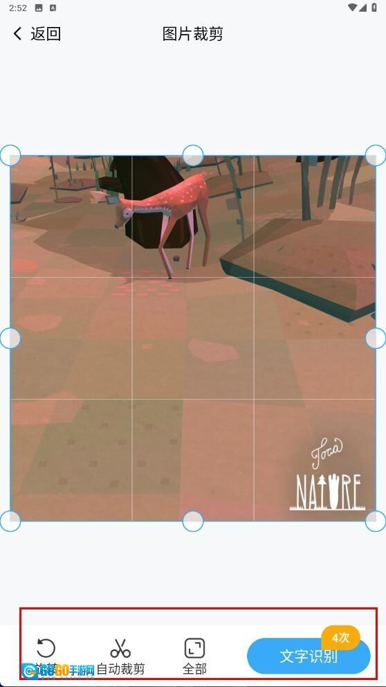 4、进入图片裁剪界面后,能够开展旋转、裁剪等操作,点击【文字识别-功能按钮】即可对图片中的文字进行识别。