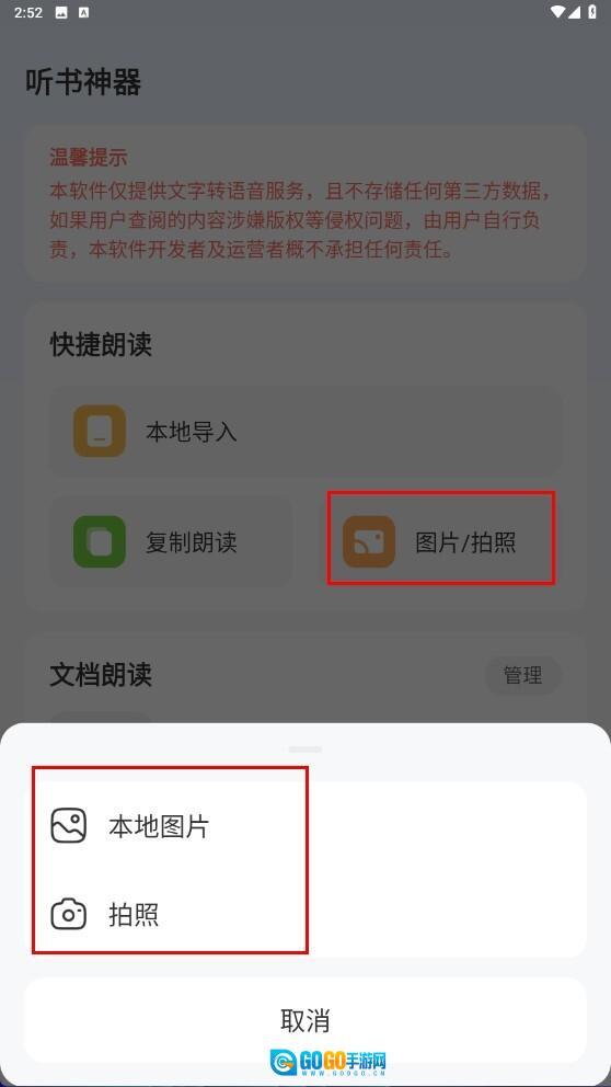 3、点击【图片/拍照】功能按钮,通过选择【本地图片】或【拍照】的方式导入图片。
