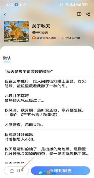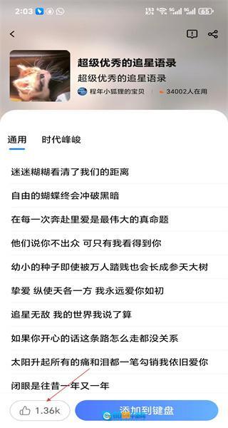 2、在超棒的追星语录详情页,找到点赞按钮并点击,即可参与语录互动。