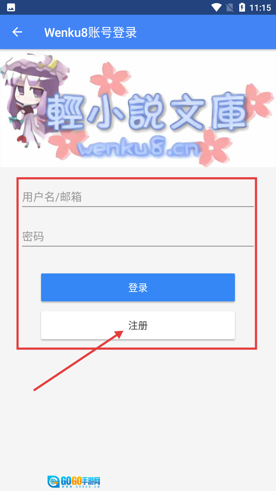 3、在Wenku8的账号登录页面,既能够输入用户名/邮箱与密码后点击【登录】按钮,也可以选择点击【注册】按钮来完成账号注册操作。