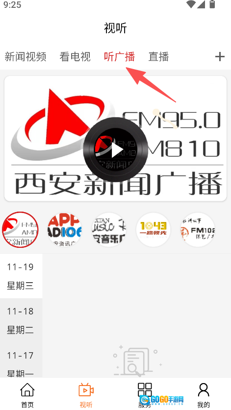 切换至听广播板块,挑选广播频道,即可收听本地的广播内容。