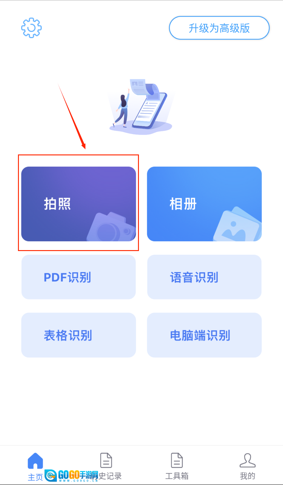 1、点击主页的“拍照”功能。
