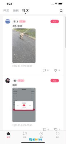 玩家进入暴扣电竞首页后,既可以选择开黑或陪练模块,也能进入社区浏览帖子。