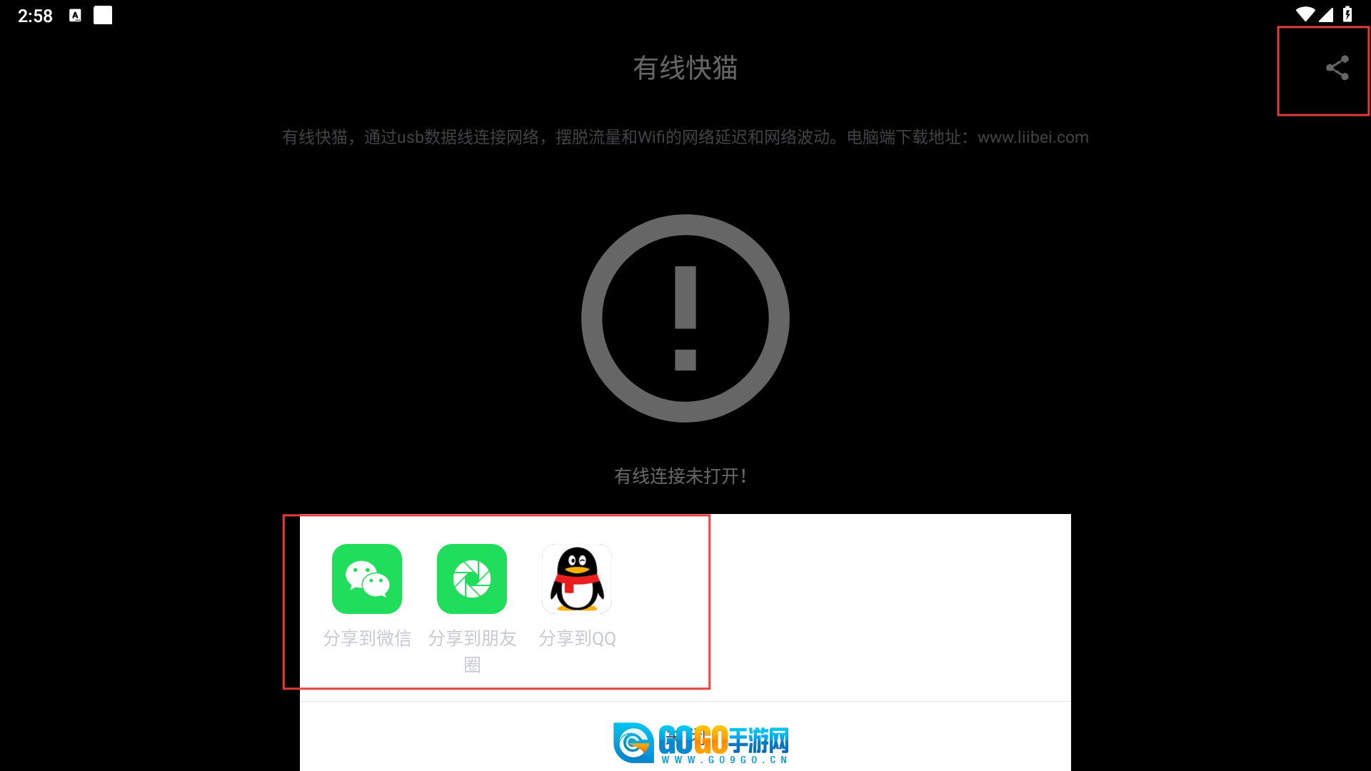 4、点击右上角的分享图标后,能选择【分享至微信/QQ选项】,以此分享应用的相关信息。