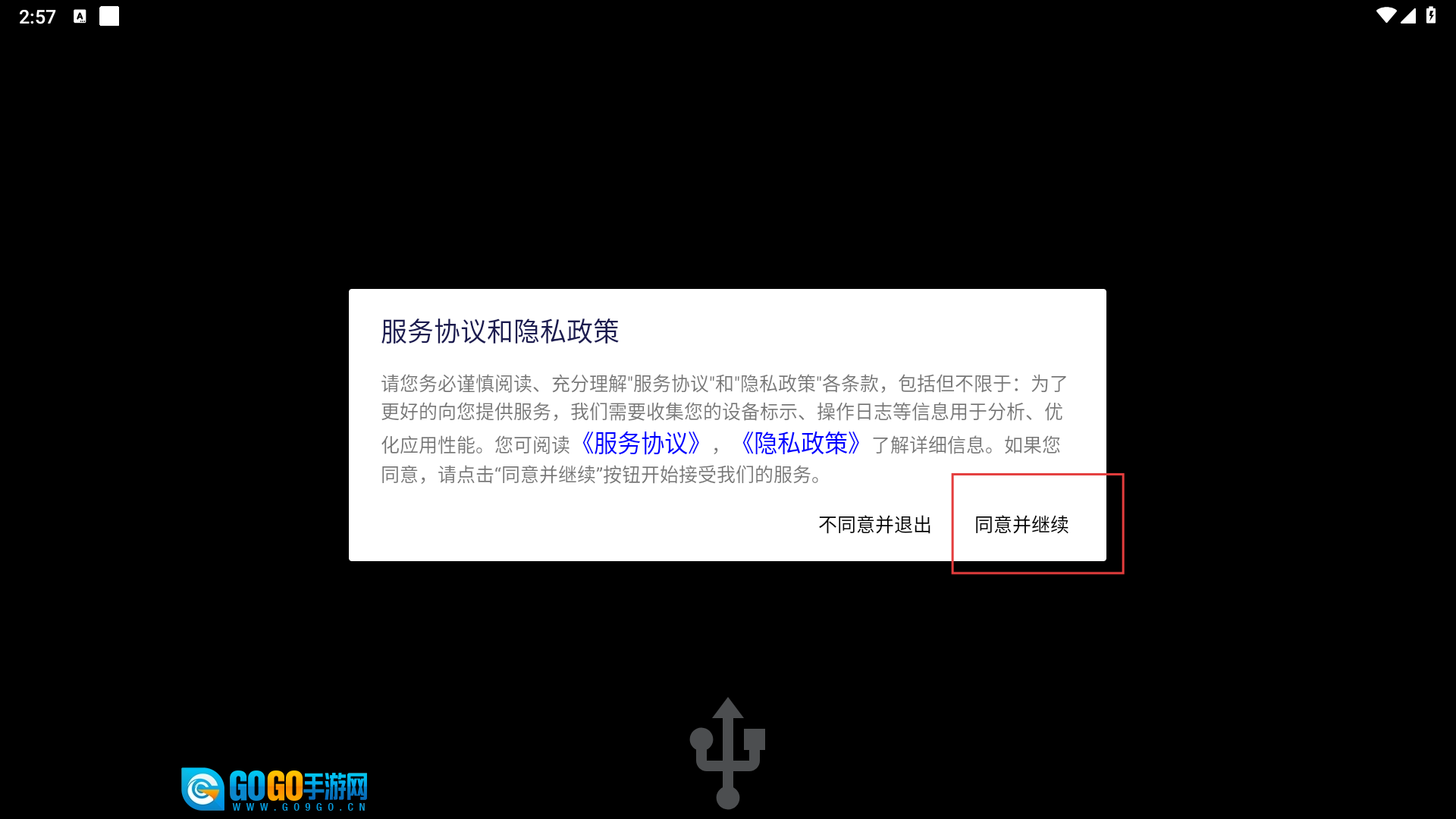 1、阅读【服务协议和隐私政策-弹窗内容】后,点击【同意并继续-按钮】即可进入应用。