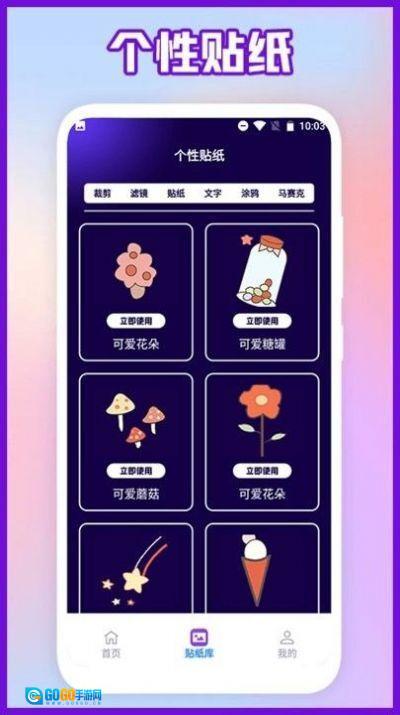 1、这款相片编辑软件中,材料与模板的分类做得十分细致,还提供了丰富的滤镜以及各类美化贴纸等功能。