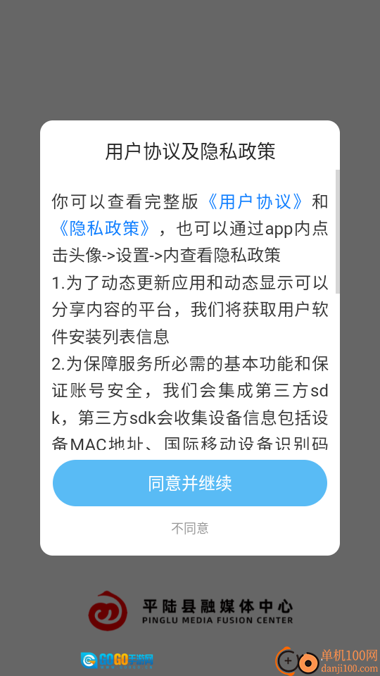 1. 首先打开软件,阅读说明后点击“同意并继续”按钮进入。