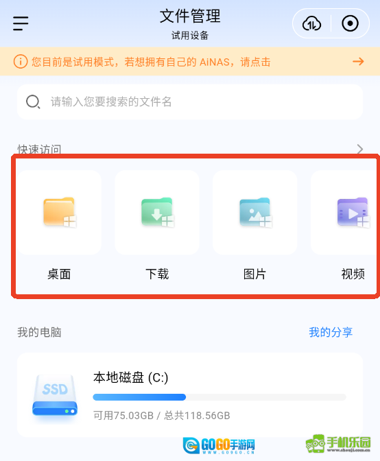 遵循以下步骤,即可将AiNAS中的文件到手机: