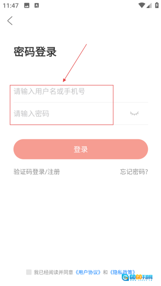 3、进入登录页面后,先填写账号相关信息,接着勾选对应的协议,做好登录前的准备。