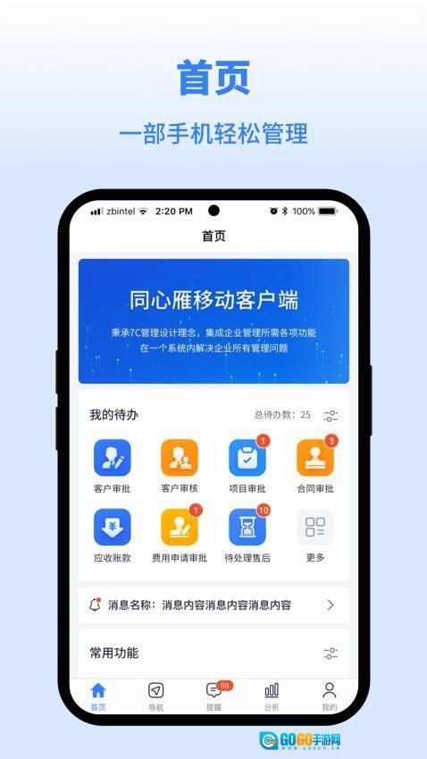 同心雁SERP最新版是一款面向企业的一站式办公工具,致力于帮助企业提高工作效率,推动数字化转型进程。通过这款应用,企业可以一站式完成营销、客户、订单、采购及财务管理等核心业务,无需依赖传统的面对面沟通或纸质办公模式,只需一部手机就能轻松处理日常工作,让工作更便捷高效。