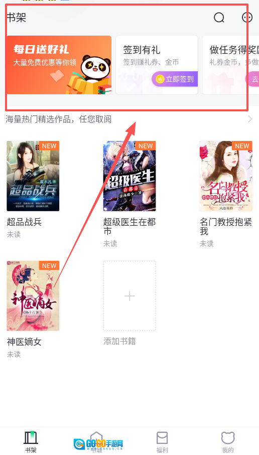 1、书架是展示所有收藏书籍的主界面,记得常来签到领取阅读福利,打造专属于你的数字阅读小天地。