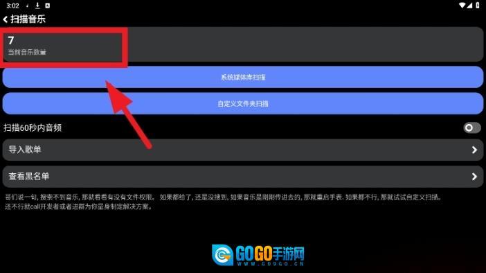 完成后,界面上方会呈现出当前检测到的音乐总数。