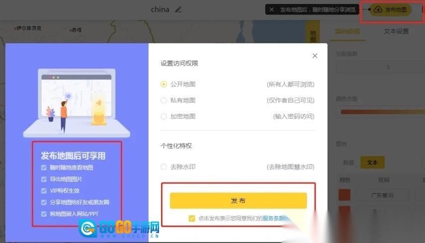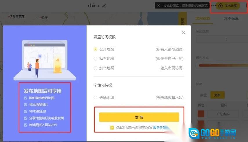 9、完成设置后发布地图。该地图可直接嵌入PPT,且支持免费去除水印。