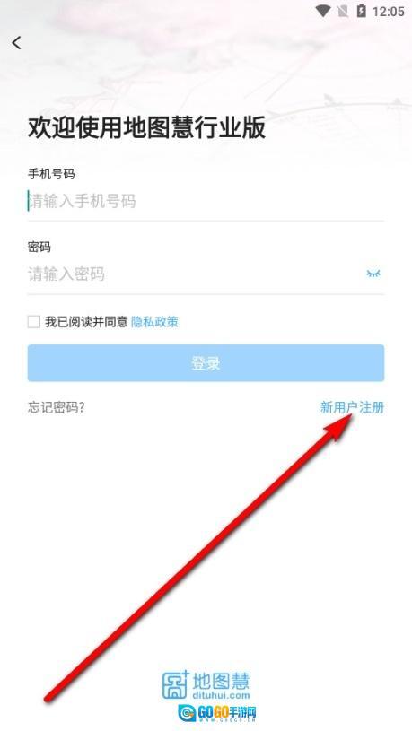 1、打开地图慧行业版,选择【新用户注册】。