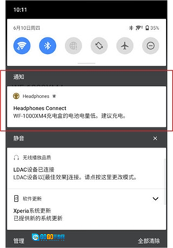 您可以在手机的电池显示区域查看耳机剩余电量,这种方式方便又快捷。其中WH-1000XM3型号能显示10个档位的电量,其他型号则可显示4个档位的电量,具体为100%、70%、50%和20%。