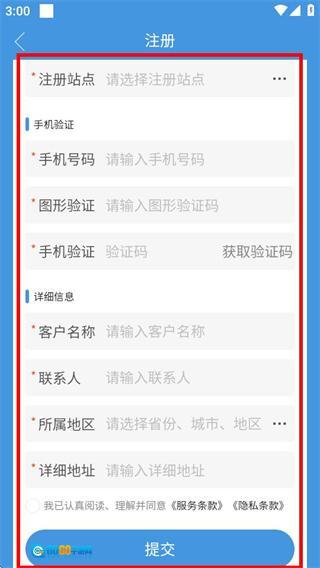 4、进入注册页面后,按要求填写相关信息并勾选协议,之后点击提交按钮,就能完成注册流程。